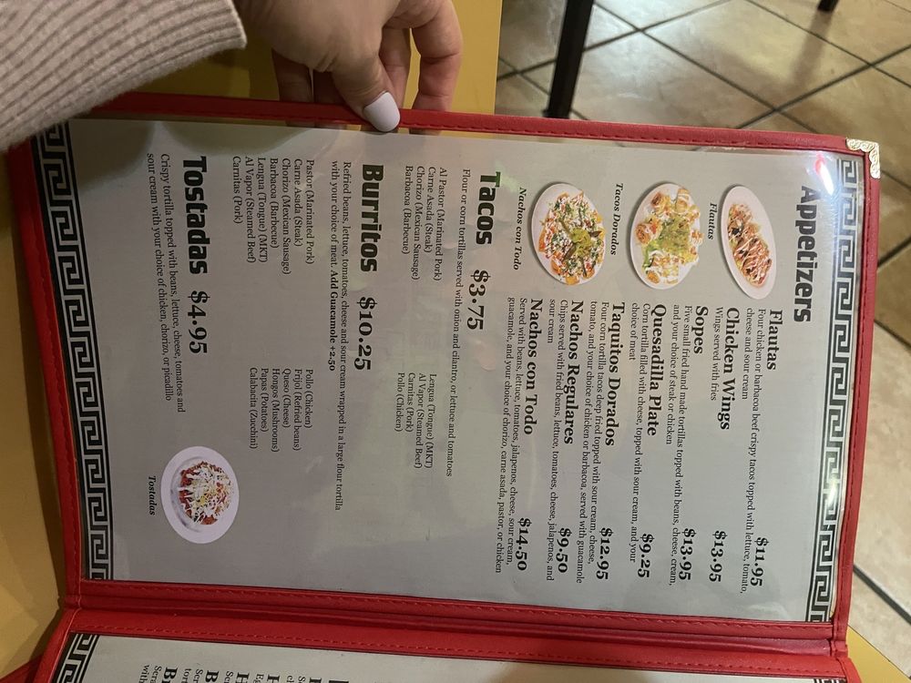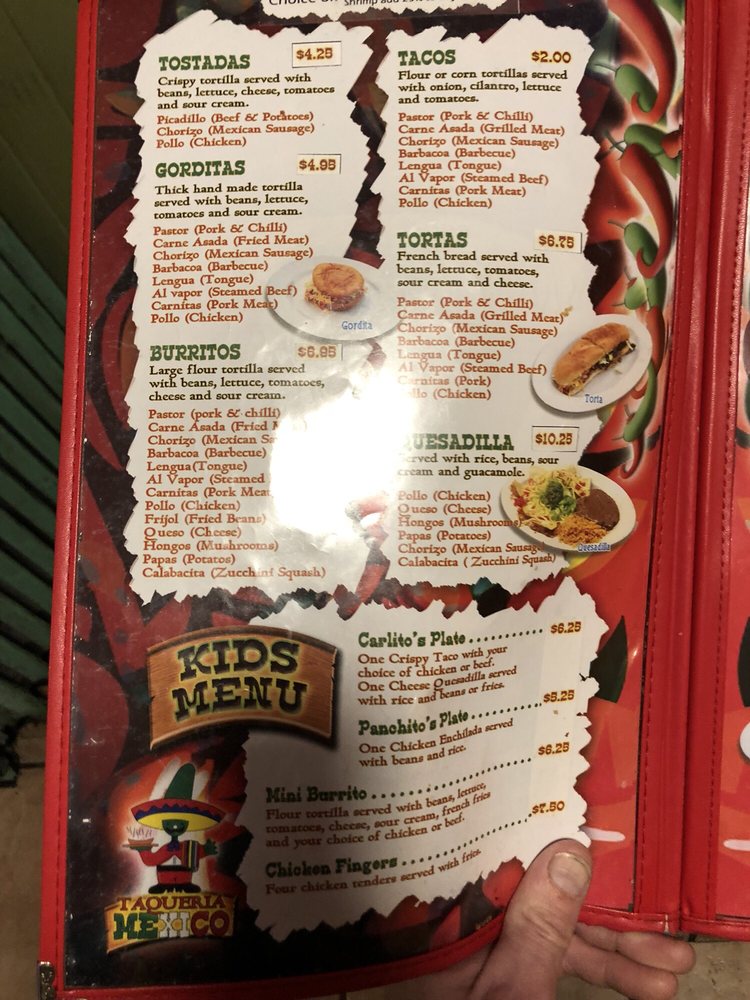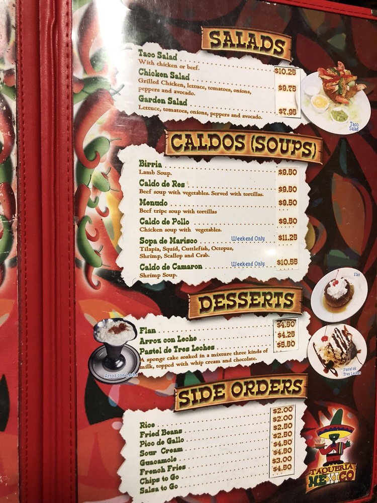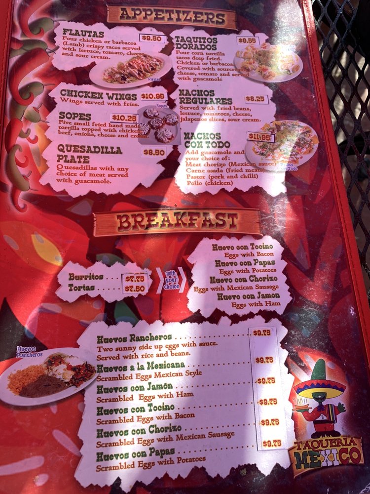 Taqueria Mexico Waltham Menu